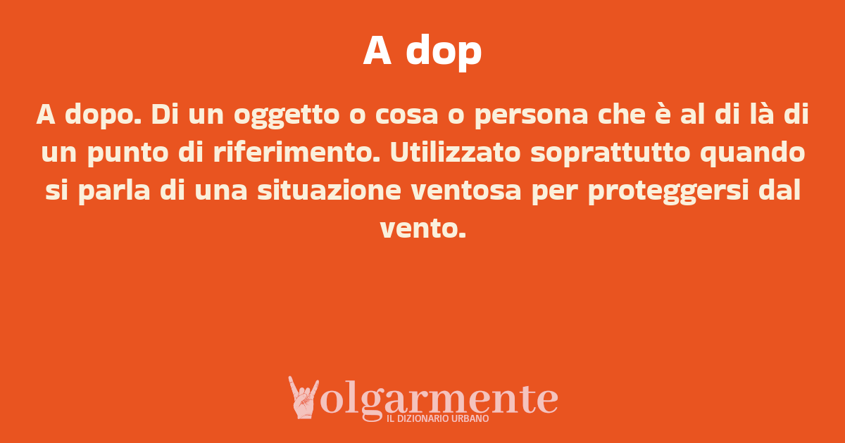 A dopo. Di un oggetto o cosa o persona che è al di là di un punto di riferimento. Utilizzato soprattutto quando si parla di una situazione ventosa per proteggersi dal vento.