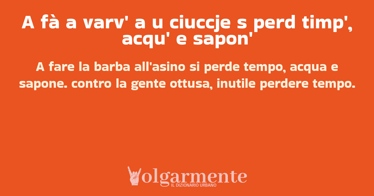 su0 down0 +0 A fare la barba all'asino si perde tempo, acqua e sapone. contro la gente ottusa, inutile perdere tempo. da Anonimo Taranto, TA, Puglia