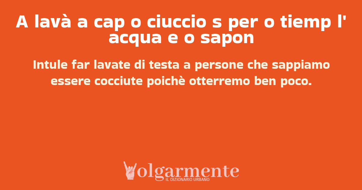 su0 down0 +0 Intule far lavate di testa a persone che sappiamo essere cocciute poichè otterremo ben poco. da Anonimo Sant'Arpino, CE, Campania