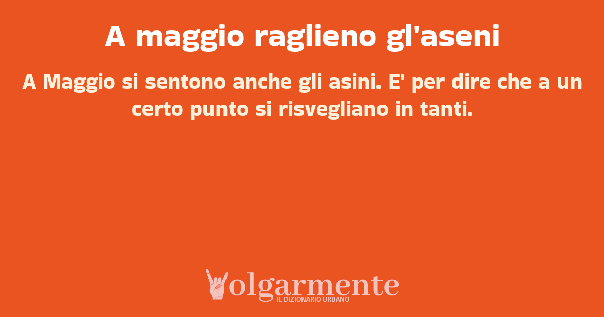 su0 down0 +0 A Maggio si sentono anche gli asini. E' per dire che a un certo punto si risvegliano in tanti. da Anonimo Latina, LT, Lazio