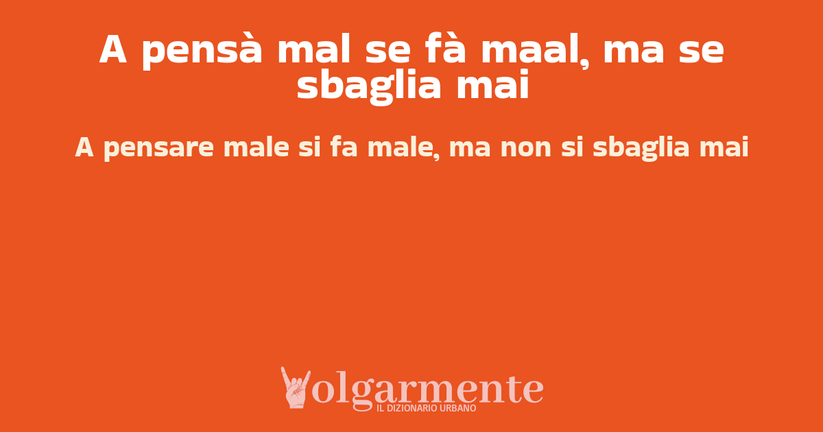 A pensà mal se fà maal, ma se sbaglia mai