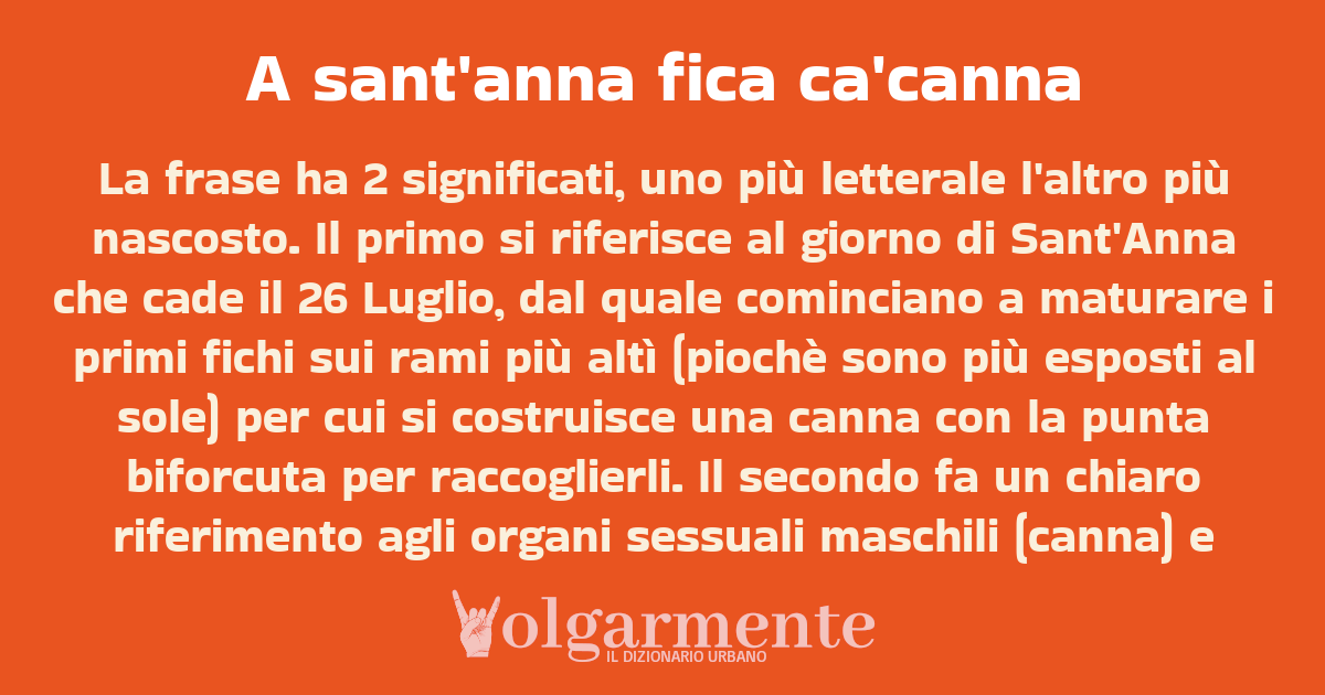 Il primo si riferisce al giorno di Sant'Anna che cade il 26 Luglio, dal quale cominciano a maturare i primi fichi sui rami più altì (piochè sono più esposti al sole) per cui si costruisce una canna con la punta biforcuta per raccoglierli. Il secondo fa un chiaro riferimento agli organi sessuali maschili (canna) e femminili (fica).