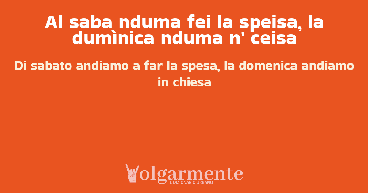 Al saba nduma fei la speisa, la dumìnica nduma n' ceisa