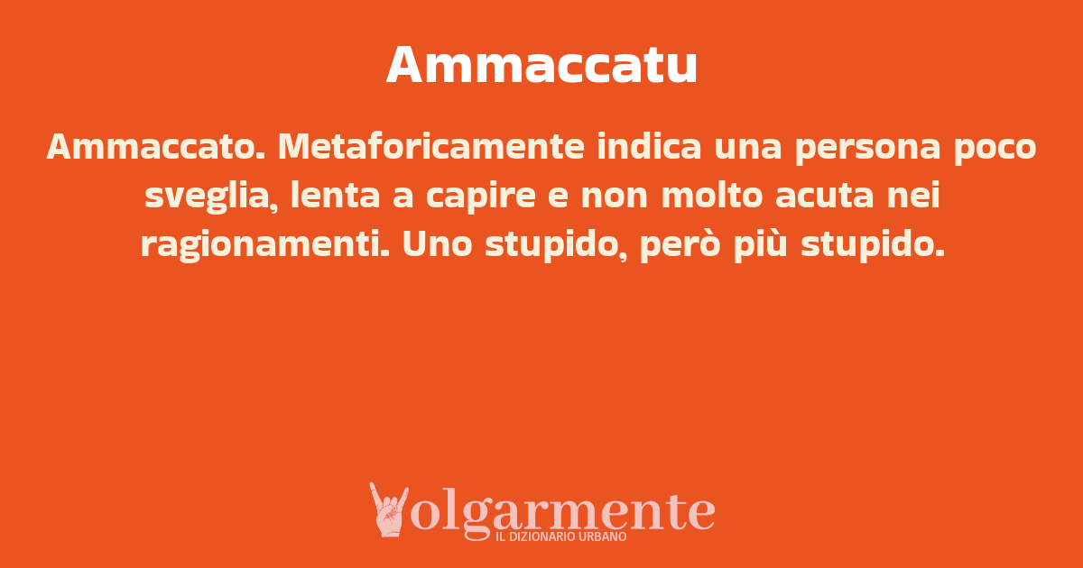 su0 down0 +0 Ammaccato. Metaforicamente indica una persona poco sveglia, lenta a capire e non molto acuta nei ragionamenti. Uno stupido, però più stupido. da FranzKarpanov Avola, SR, Sicilia