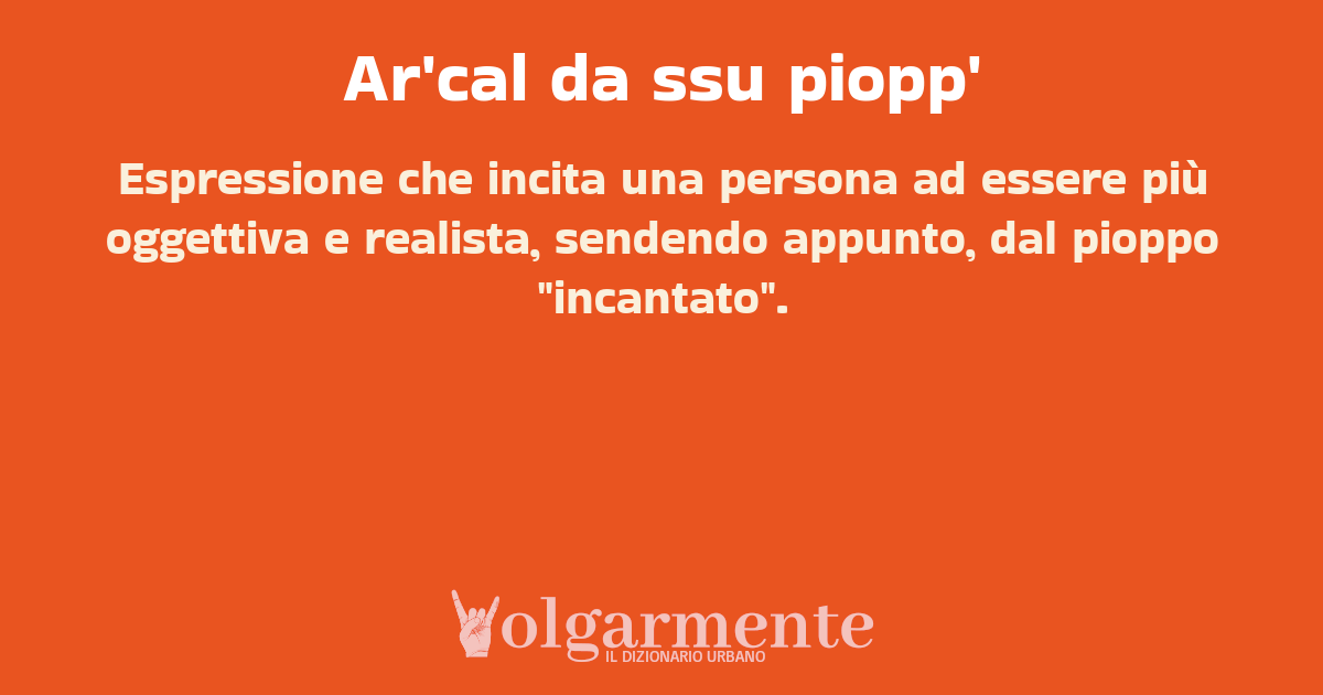 su0 down0 +0 Espressione che incita una persona ad essere più oggettiva e realista, sendendo appunto, dal pioppo "incantato". da Anonimo Pescara, PE, Abruzzo