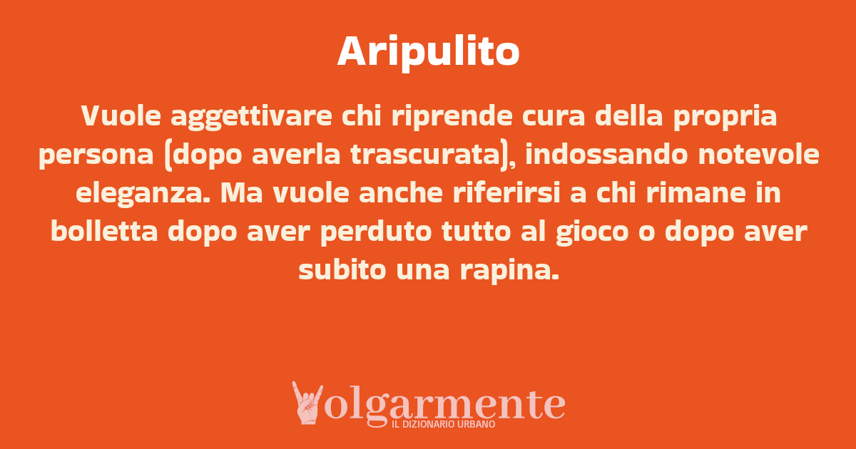 Vuole aggettivare chi riprende cura della propria persona (dopo averla trascurata), indossando notevole eleganza. Ma vuole anche riferirsi a chi rimane in bolletta dopo aver perduto tutto al gioco o dopo aver subito una rapina.