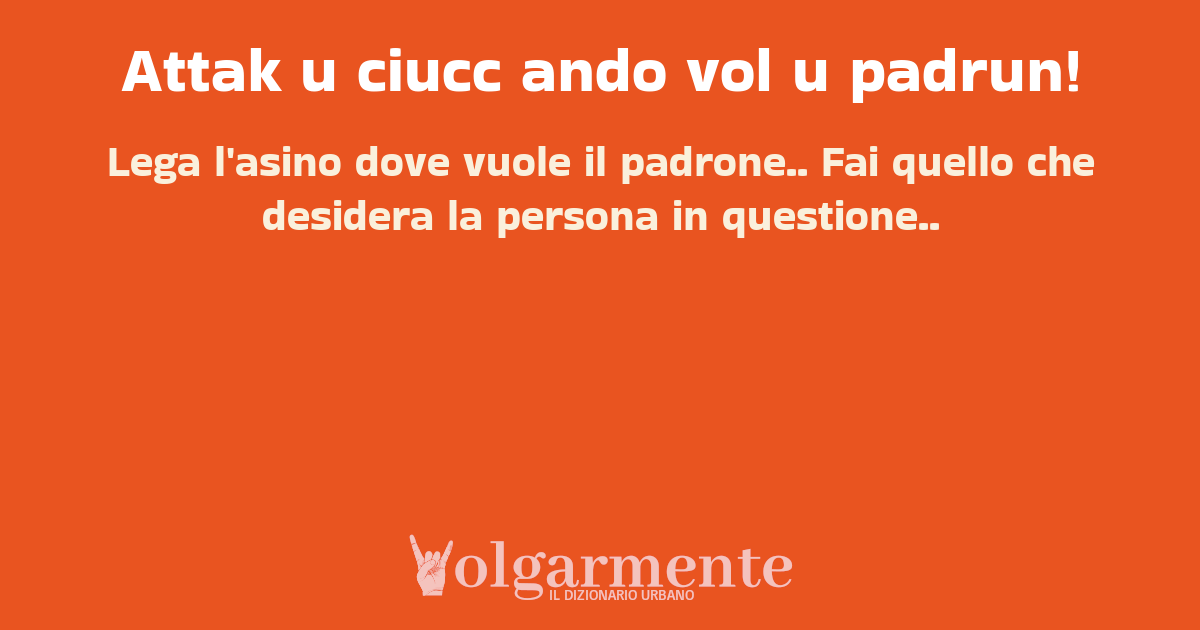 su0 down0 +0 Lega l'asino dove vuole il padrone.. Fai quello che desidera la persona in questione.. da Anonimo Ferrandina, MT, Basilicata