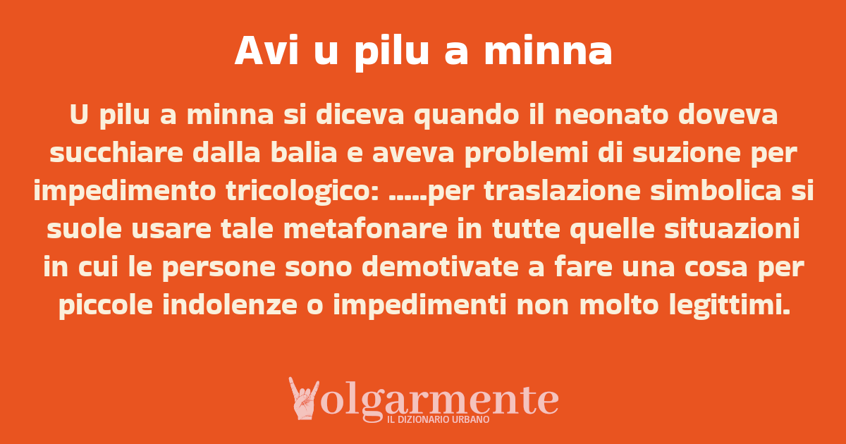 U pilu a minna si diceva quando il neonato doveva succhiare dalla balia e aveva problemi di suzione per impedimento tricologico: .....per traslazione simbolica si suole usare tale metafonare in tutte quelle situazioni in cui le persone sono demotivate a fare una cosa per piccole indolenze o impedimenti non molto legittimi.