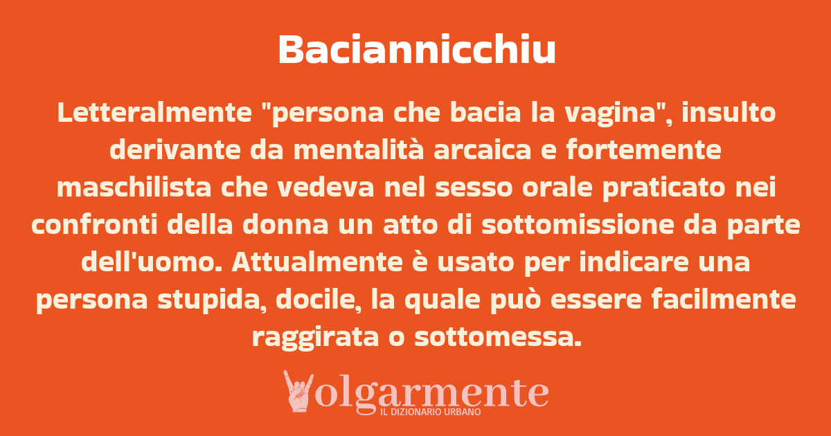 Letteralmente "persona che bacia la vagina", insulto derivante da mentalità arcaica e fortemente maschilista che vedeva nel sesso orale praticato nei confronti della donna un atto di sottomissione da parte dell'uomo. Attualmente è usato per indicare una persona stupida, docile, la quale può essere facilmente raggirata o sottomessa.