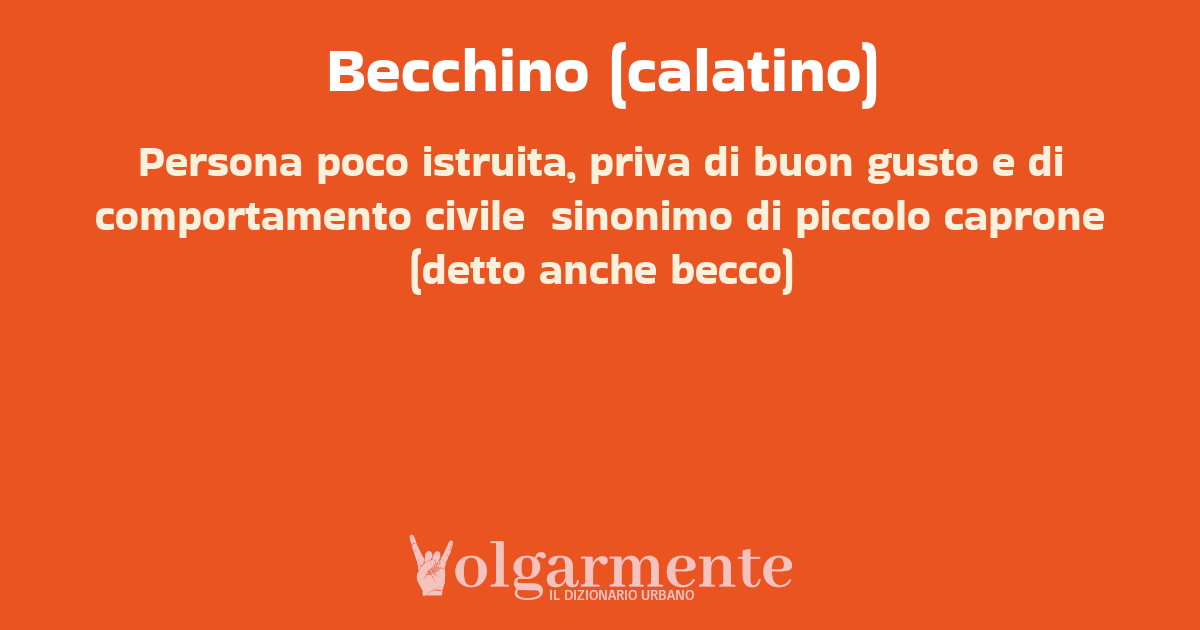 su0 down0 +0 Persona poco istruita, priva di buon gusto e di comportamento civile sinonimo di piccolo caprone (detto anche becco) da Anonimo Caltagirone, CT, Sicilia