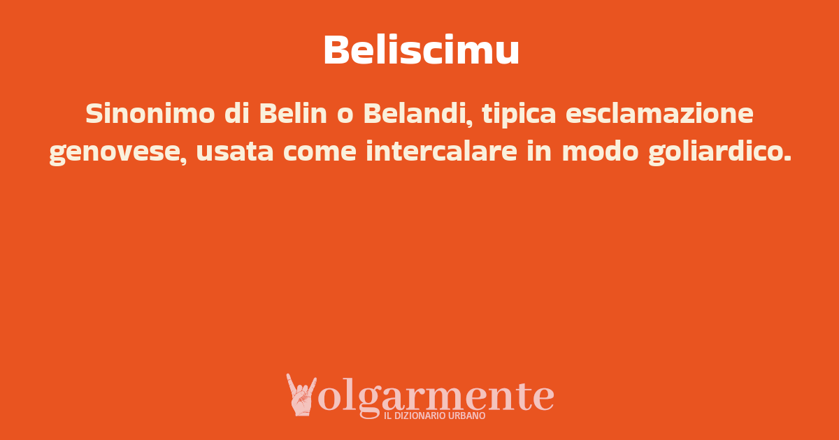 su0 down0 +0 Sinonimo di Belin o Belandi, tipica esclamazione genovese, usata come intercalare in modo goliardico. da Anonimo Genova, GE, Liguria