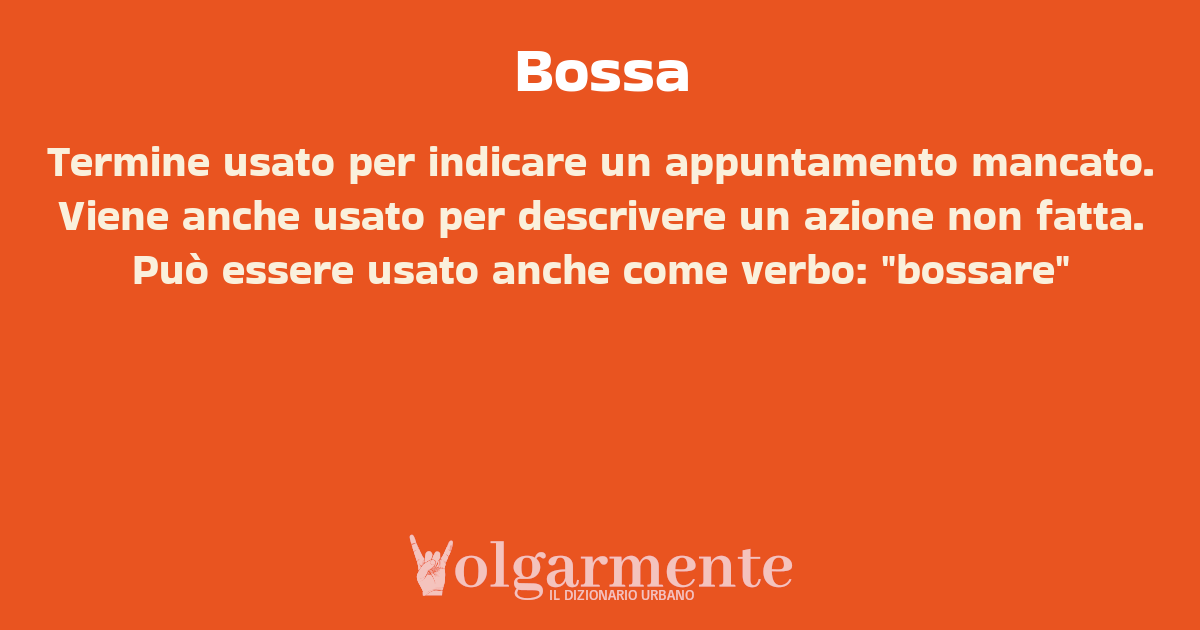 Termine usato per indicare un appuntamento mancato. Viene anche usato per descrivere un azione non fatta. Può essere usato anche come verbo: "bossare"