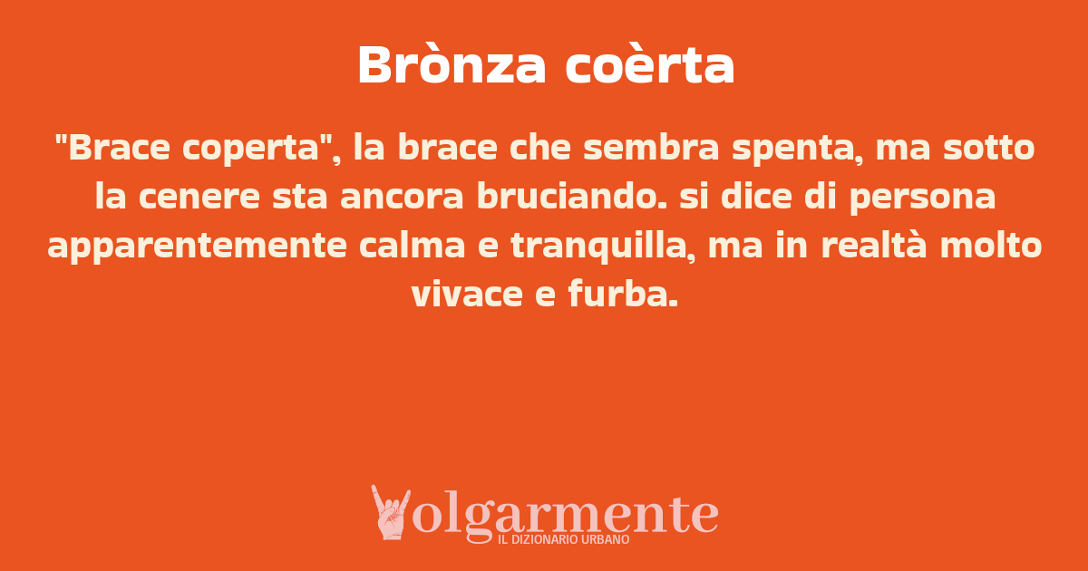 su0 down0 +0 "Brace coperta", la brace che sembra spenta, ma sotto la cenere sta ancora bruciando. si dice di persona apparentemente calma e tranquilla, ma in realtà molto vivace e furba. da Anonimo Rovigo, RO, Veneto