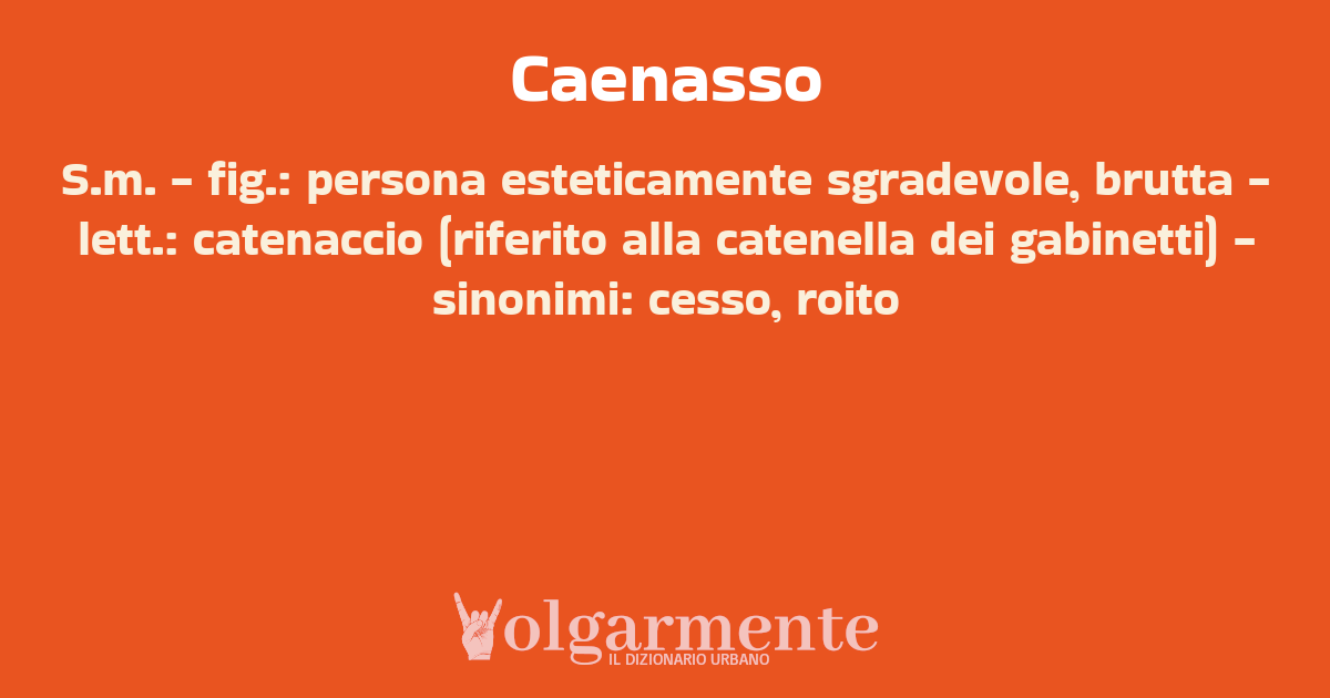 su0 down0 +0 S.m. - fig.: persona esteticamente sgradevole, brutta - lett.: catenaccio (riferito alla catenella dei gabinetti) - sinonimi: cesso, roito da Anonimo Padova, PD, Veneto