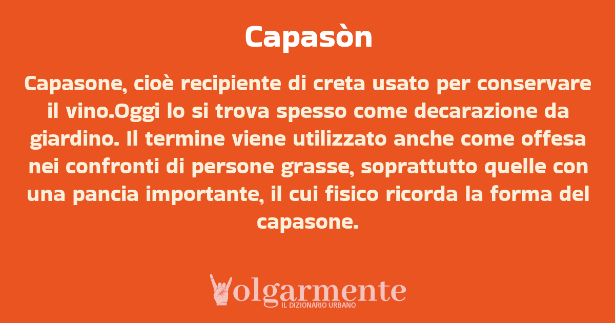 Capasone, cioè recipiente di creta usato per conservare il vino.Oggi lo si trova spesso come decarazione da giardino. Il termine viene utilizzato anche come offesa nei confronti di persone grasse, soprattutto quelle con una pancia importante, il cui fisico ricorda la forma del capasone.