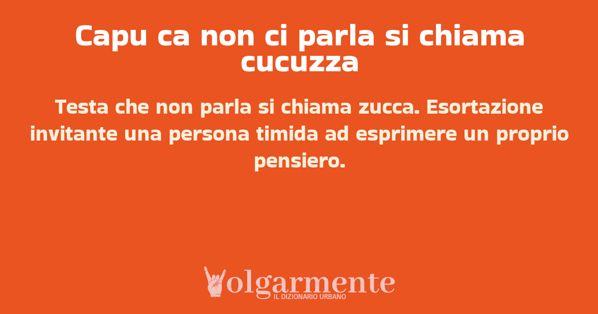 su0 down0 +0 Testa che non parla si chiama zucca. Esortazione invitante una persona timida ad esprimere un proprio pensiero. da Giovanni San Giorgio Ionico, TA, Puglia