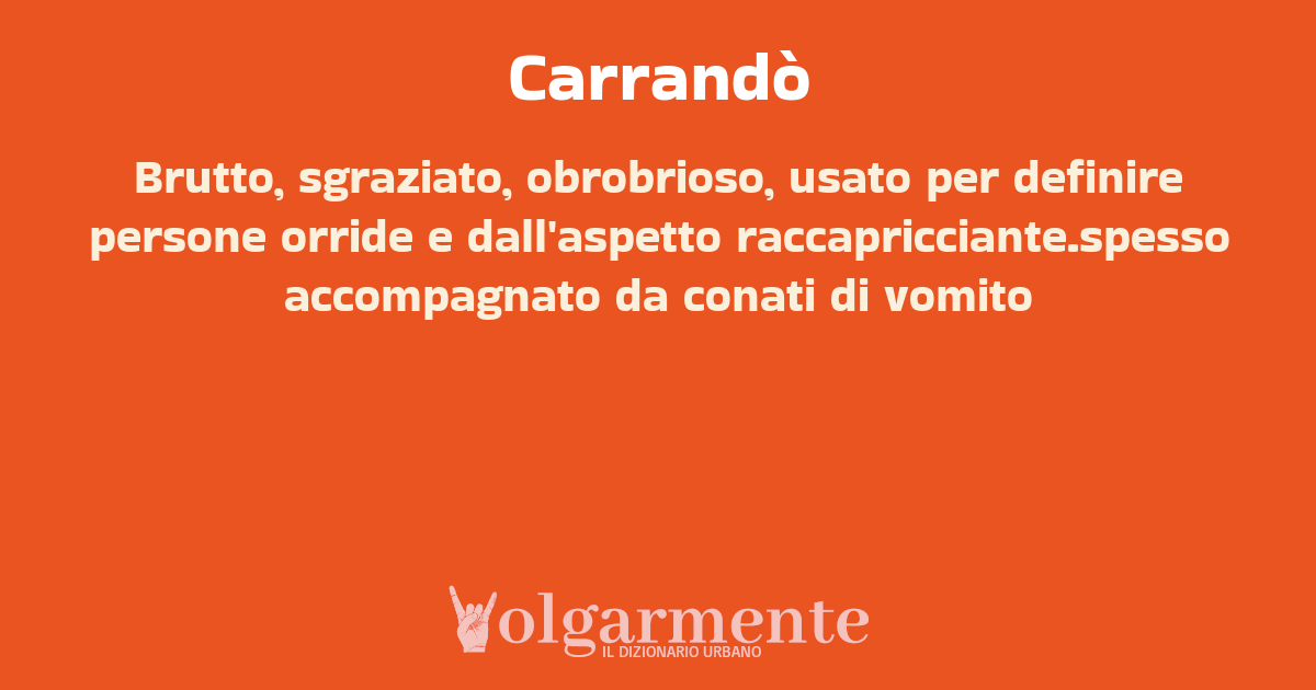 su0 down0 +0 Brutto, sgraziato, obrobrioso, usato per definire persone orride e dall'aspetto raccapricciante.spesso accompagnato da conati di vomito da Anonimo Ascoli Piceno, AP, Marche