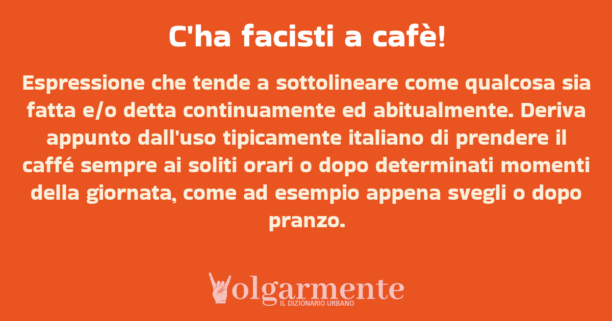 Espressione che tende a sottolineare come qualcosa sia fatta e/o detta continuamente ed abitualmente. Deriva appunto dall'uso tipicamente italiano di prendere il caffé sempre ai soliti orari o dopo determinati momenti della giornata, come ad esempio appena svegli o dopo pranzo.