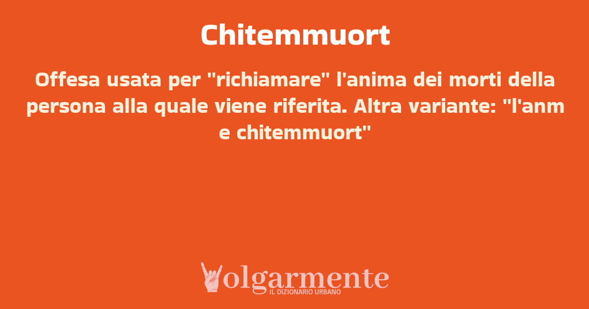 su0 down0 +0 Offesa usata per ''richiamare'' l'anima dei morti della persona alla quale viene riferita. Altra variante: ''l'anm e chitemmuort'' da Anonimo Napoli, NA, Campania
