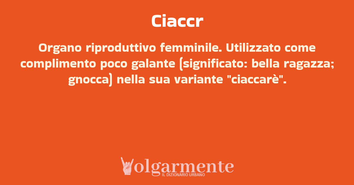 su0 down0 +0 Organo riproduttivo femminile. Utilizzato come complimento poco galante (significato: bella ragazza; gnocca) nella sua variante "ciaccarè". da 0wn3d Napoli, NA, Campania