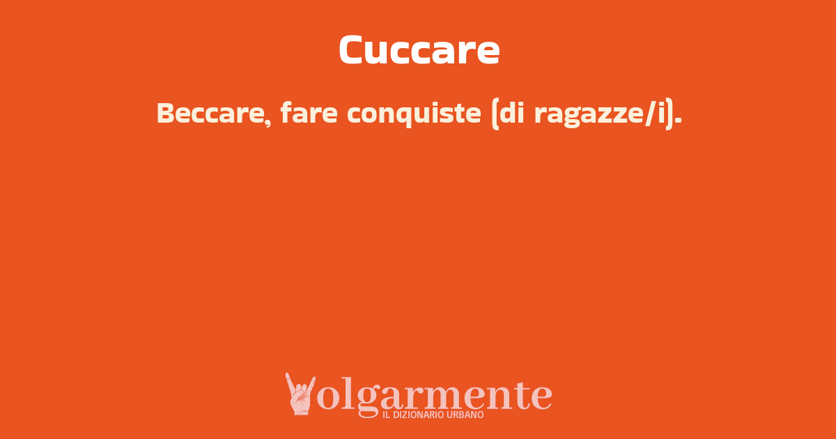 su0 down0 +0 Beccare, fare conquiste (di ragazze/i). Esempio: Paolo si è fatto i capelli e si è comprato una camicia nuova. Stasera va in discoteca a cuccare. da Fabio Del Vigna Pescia, PT, Toscana