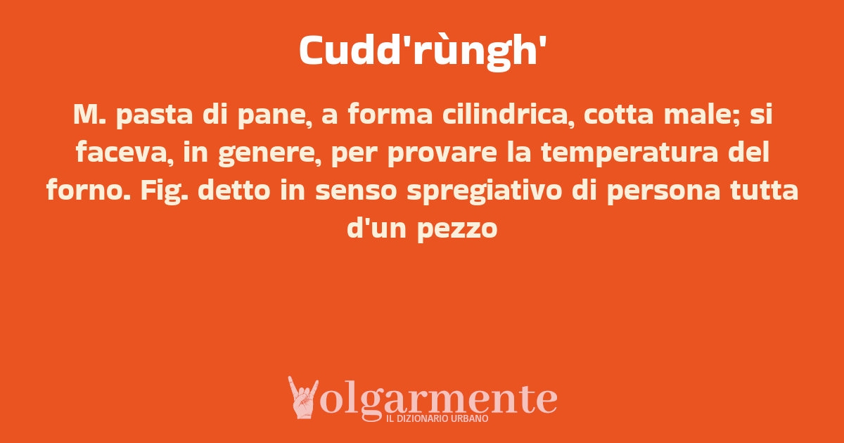 su0 down0 +0 M. pasta di pane, a forma cilindrica, cotta male; si faceva, in genere, per provare la temperatura del forno. Fig. detto in senso spregiativo di persona tutta d'un pezzo da Franca Ciantia Aidone, EN, Sicilia