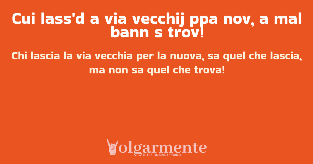 su0 down0 +0 Chi lascia la via vecchia per la nuova, sa quel che lascia, ma non sa quel che trova! da Anonimo Santa Maria del Cedro, CS, Calabria