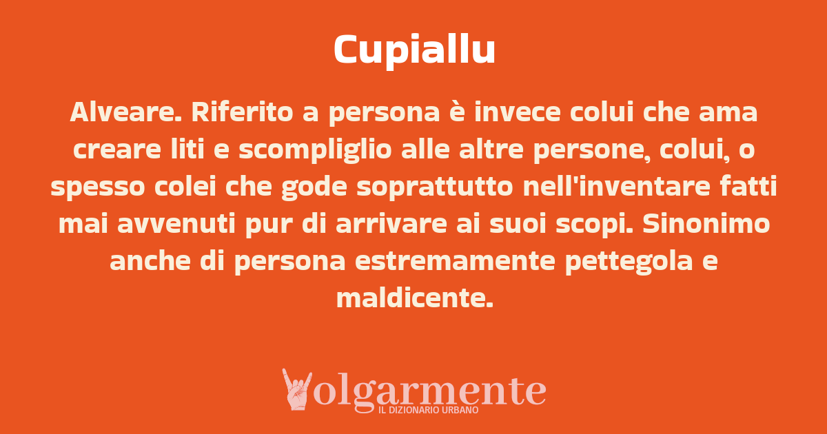 Alveare. Riferito a persona è invece colui che ama creare liti e scompliglio alle altre persone, colui, o spesso colei che gode soprattutto nell'inventare fatti mai avvenuti pur di arrivare ai suoi scopi. Sinonimo anche di persona estremamente pettegola e maldicente.