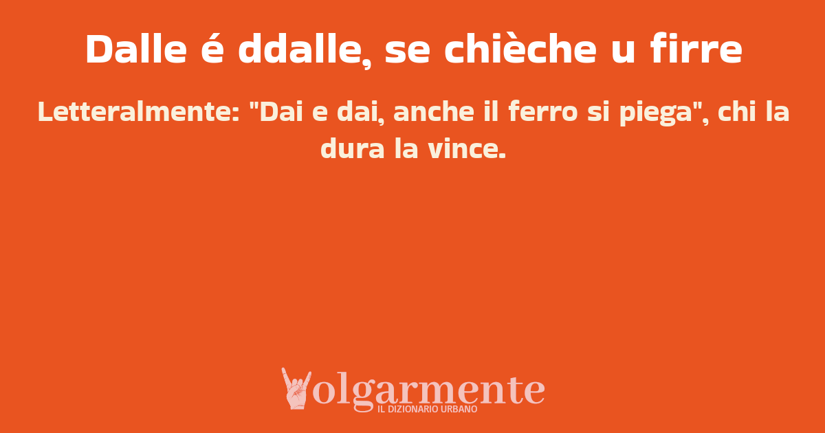 su0 down0 +0 Letteralmente: "Dai e dai, anche il ferro si piega", chi la dura la vince. da Anonimo Bari, BA, Puglia
