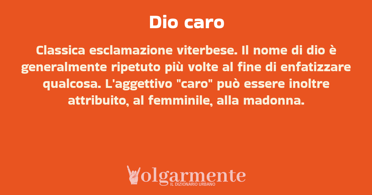 su0 down0 +0 Classica esclamazione viterbese. Il nome di dio è generalmente ripetuto più volte al fine di enfatizzare qualcosa. L'aggettivo "caro" può essere inoltre attribuito, al femminile, alla madonna. da gattobrillo Viterbo, VT, Lazio
