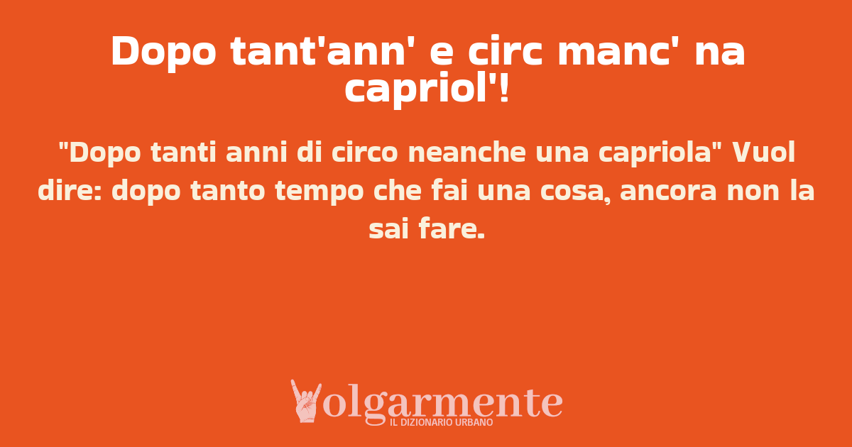 su0 down0 +0 "Dopo tanti anni di circo neanche una capriola" Vuol dire: dopo tanto tempo che fai una cosa, ancora non la sai fare. da Anonimo Campobasso, CB, Molise