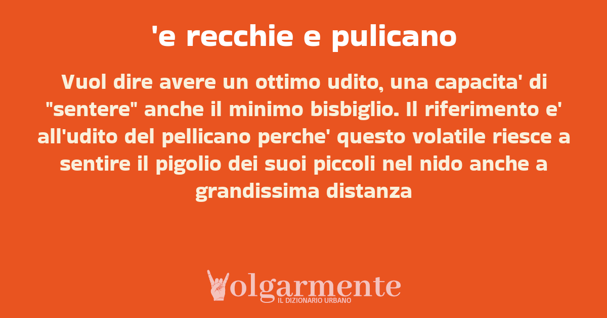 Vuol dire avere un ottimo udito, una capacita' di "sentere" anche il minimo bisbiglio. Il riferimento e' all'udito del pellicano perche' questo volatile riesce a sentire il pigolio dei suoi piccoli nel nido anche a grandissima distanza