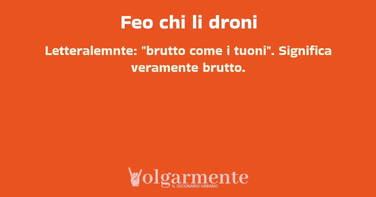 su0 down0 +0 Letteralemnte: "brutto come i tuoni". Significa veramente brutto. da marys87 Sassari, SS, Sardegna