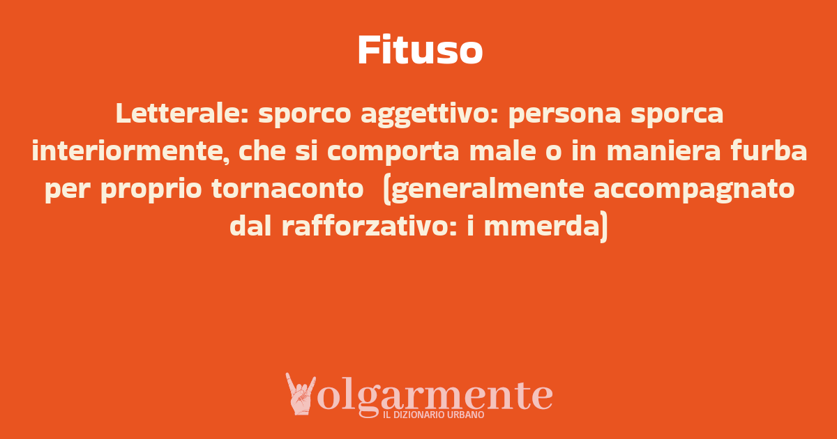 su0 down0 +0 Letterale: sporco aggettivo: persona sporca interiormente, che si comporta male o in maniera furba per proprio tornaconto (generalmente accompagnato dal rafforzativo: i mmerda) da daniel Crotone, KR, Calabria