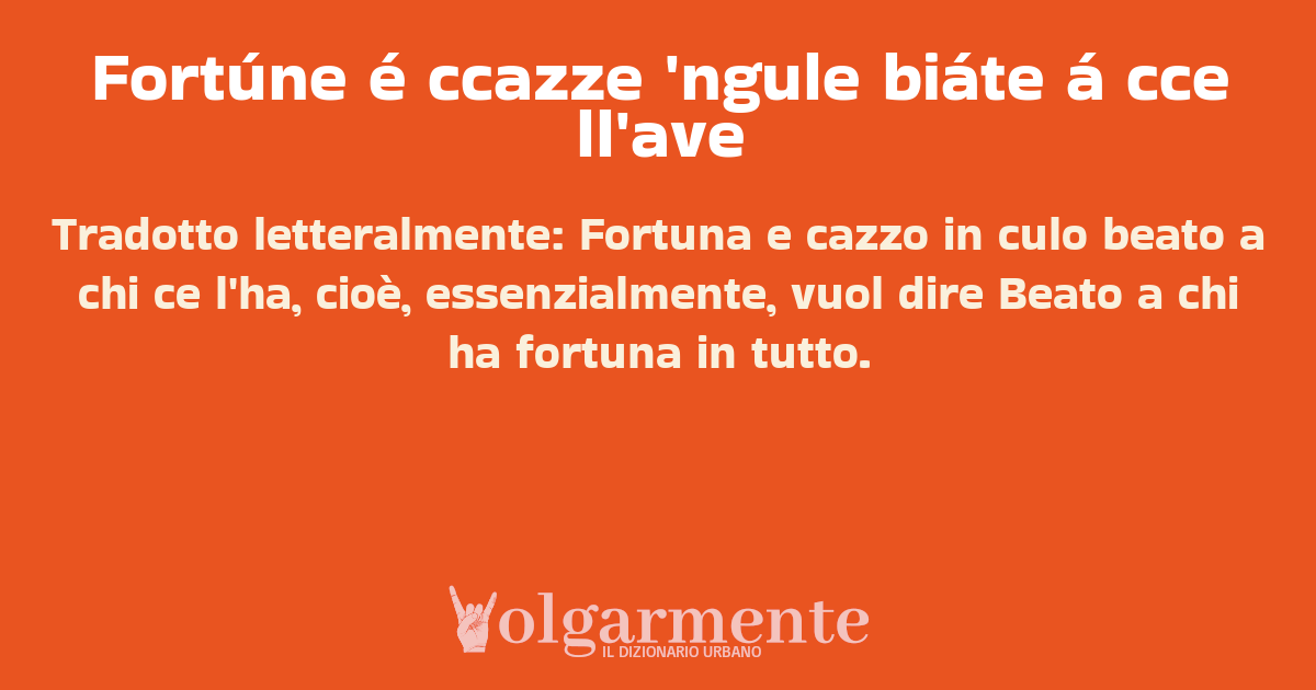 su0 down0 +0 Tradotto letteralmente: Fortuna e cazzo in culo beato a chi ce l'ha, cioè, essenzialmente, vuol dire Beato a chi ha fortuna in tutto. da Anonimo Bari, BA, Puglia