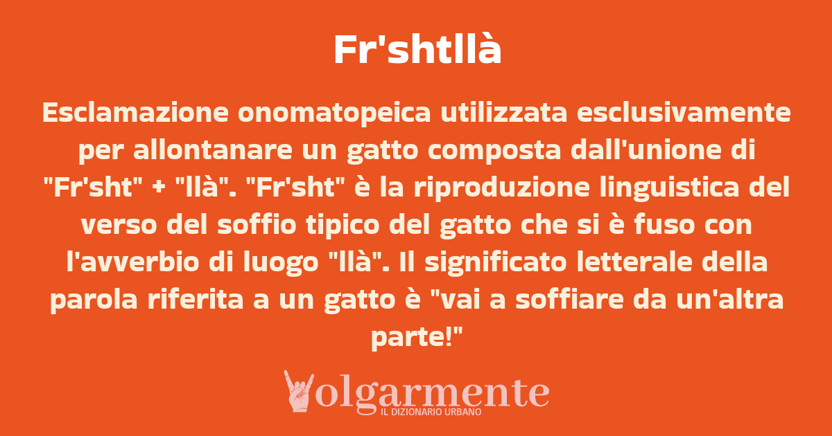 Esclamazione onomatopeica utilizzata esclusivamente per allontanare un gatto composta dall'unione di "Fr'sht" + "llà".