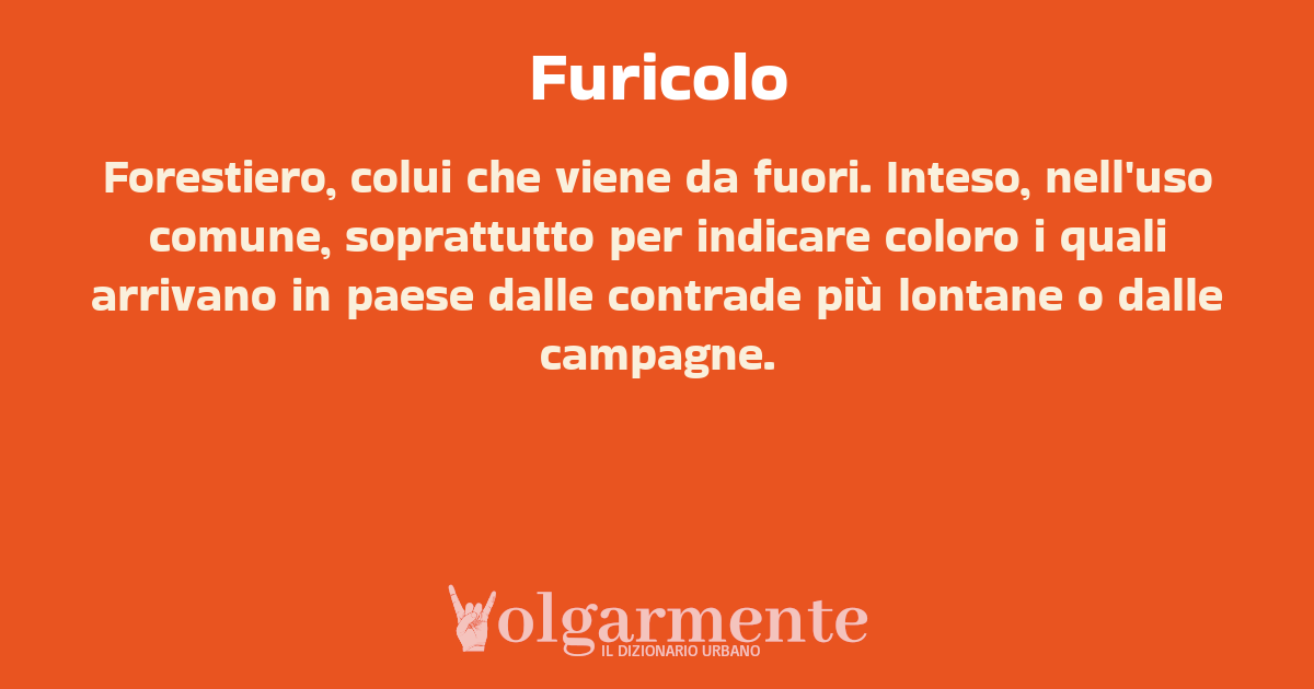 su0 down0 +0 Forestiero, colui che viene da fuori. Inteso, nell'uso comune, soprattutto per indicare coloro i quali arrivano in paese dalle contrade più lontane o dalle campagne. da Anonimo Paternopoli, AV, Campania