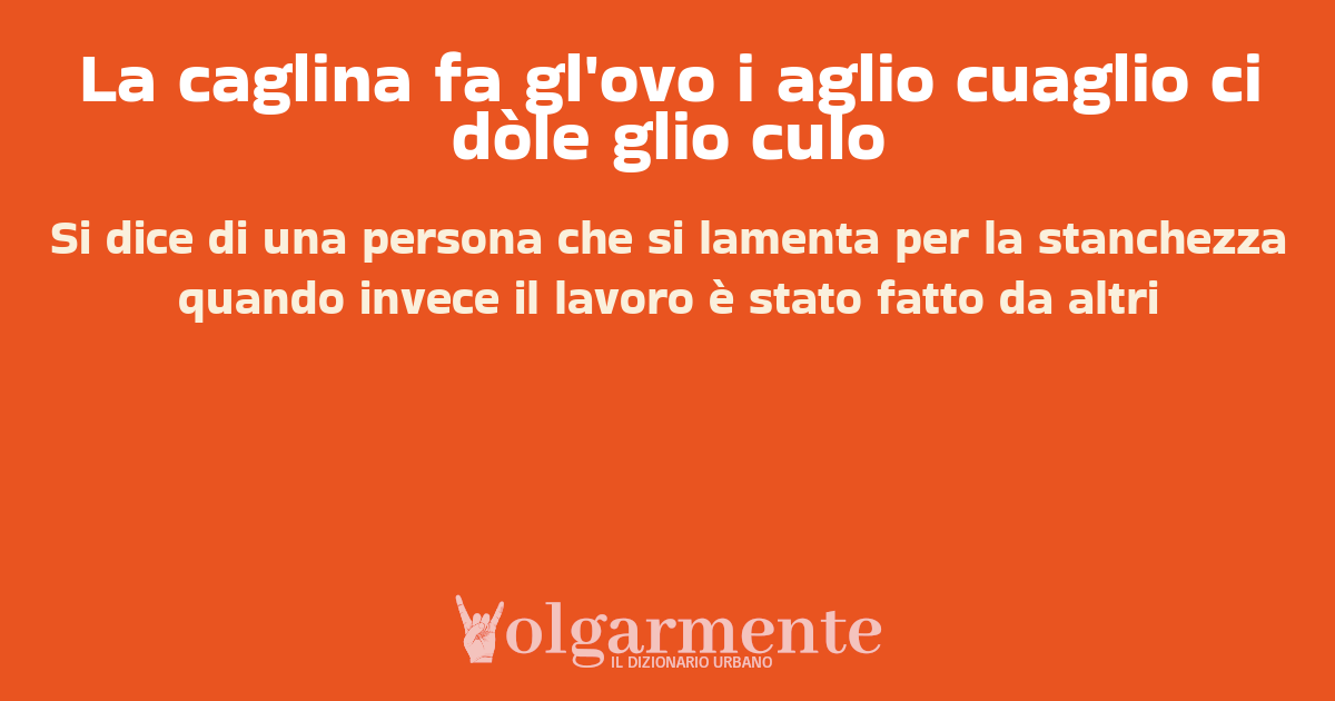 La caglina fa gl'ovo i aglio cuaglio ci dòle glio culo