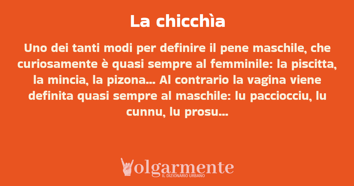 Uno dei tanti modi per definire il pene maschile, che curiosamente è quasi sempre al femminile: la piscitta, la mincia, la pizona...