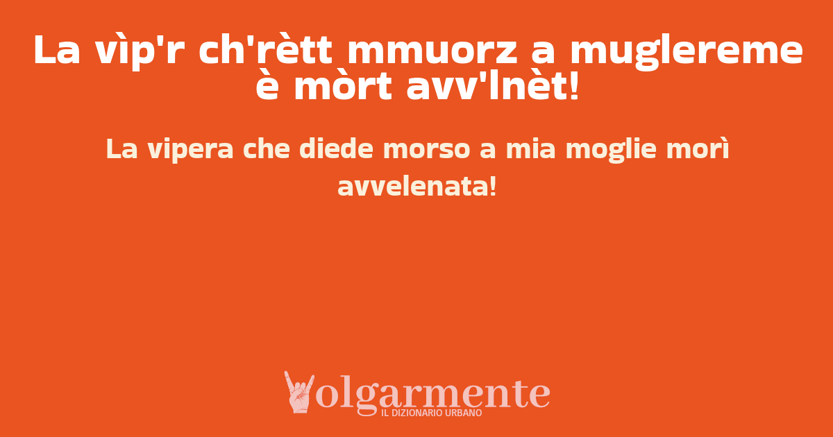La vìp'r ch'rètt mmuorz a muglereme è mòrt avv'lnèt!