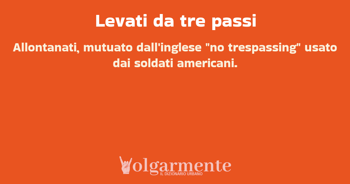 Allontanati, mutuato dall'inglese "no trespassing" usato dai soldati americani.
