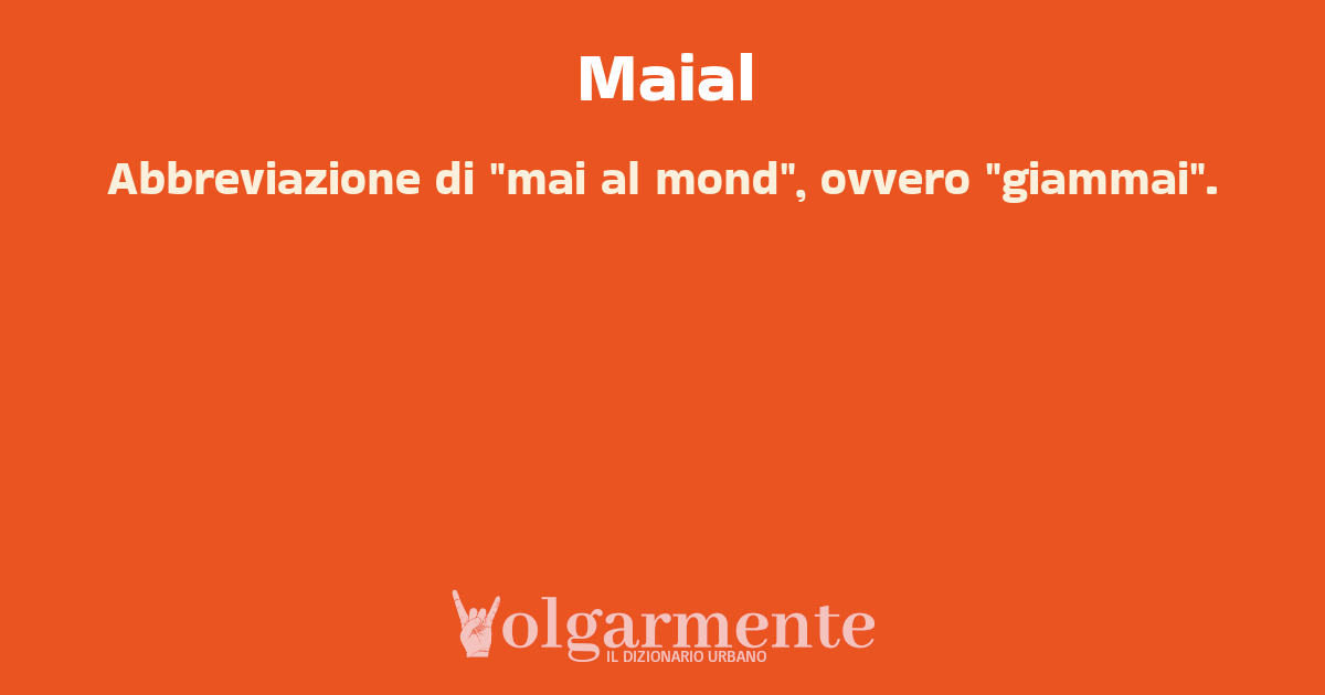 su0 down0 +0 Abbreviazione di "mai al mond", ovvero "giammai". da Anonimo Ferrara, FE, Emilia-Romagna