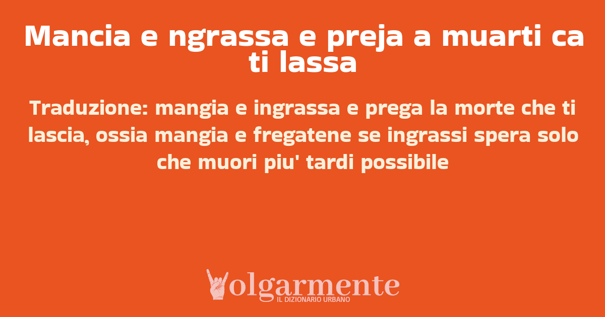 su0 down0 +0 Traduzione: mangia e ingrassa e prega la morte che ti lascia, ossia mangia e fregatene se ingrassi spera solo che muori piu' tardi possibile da Anonimo Bagheria, PA, Sicilia