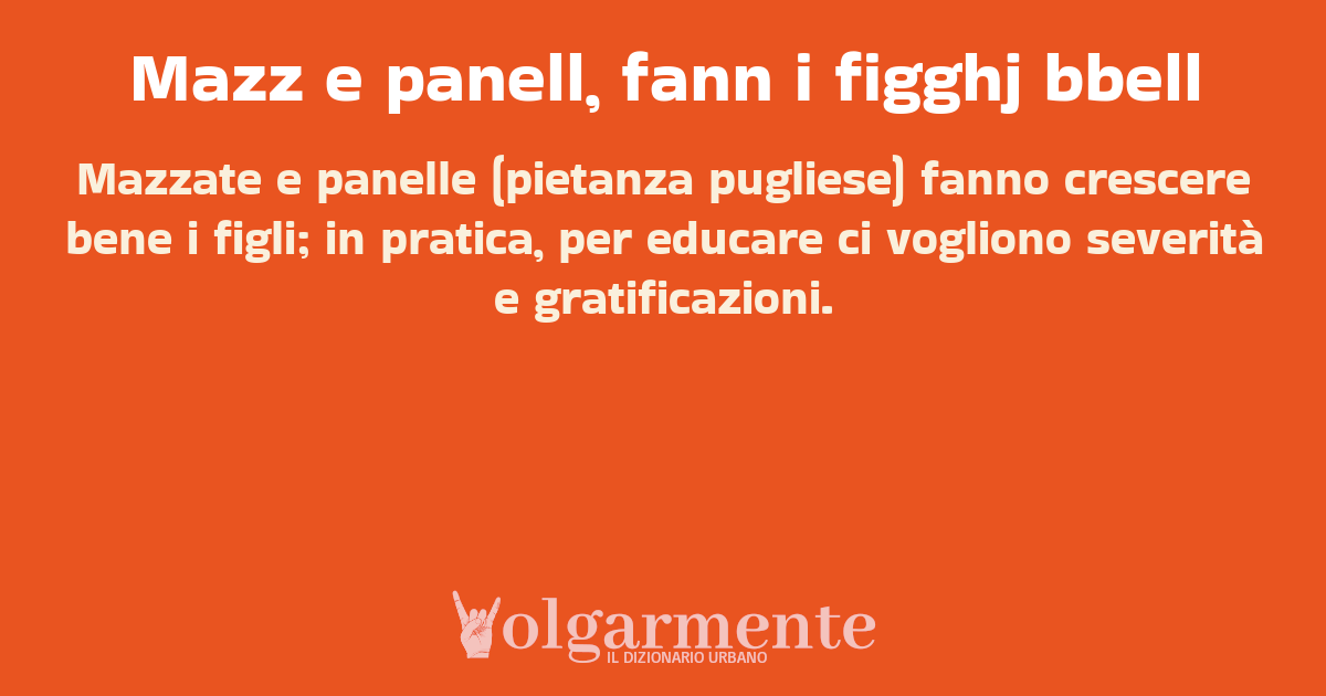 su0 down0 +0 Mazzate e panelle (pietanza pugliese) fanno crescere bene i figli; in pratica, per educare ci vogliono severità e gratificazioni. da Anonimo Lucera, FG, Puglia