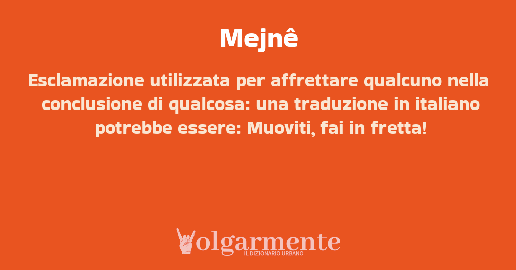 Esclamazione utilizzata per affrettare qualcuno nella conclusione di qualcosa: una traduzione in italiano potrebbe essere: Muoviti, fai in fretta!