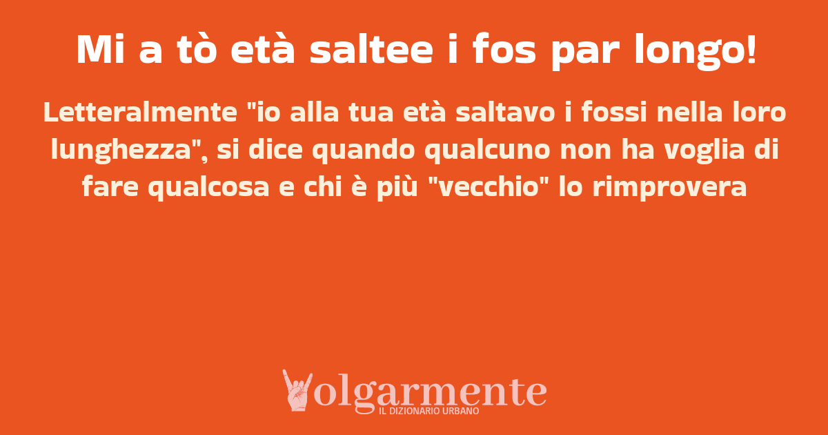 Letteralmente "io alla tua età saltavo i fossi nella loro lunghezza", si dice quando qualcuno non ha voglia di fare qualcosa e chi è più "vecchio" lo rimprovera