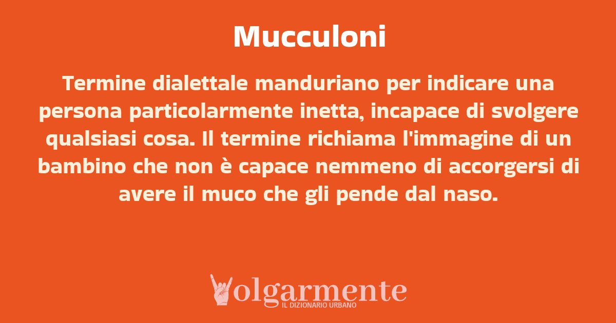 Termine dialettale manduriano per indicare una persona particolarmente inetta, incapace di svolgere qualsiasi cosa. Il termine richiama l'immagine di un bambino che non è capace nemmeno di accorgersi di avere il muco che gli pende dal naso.