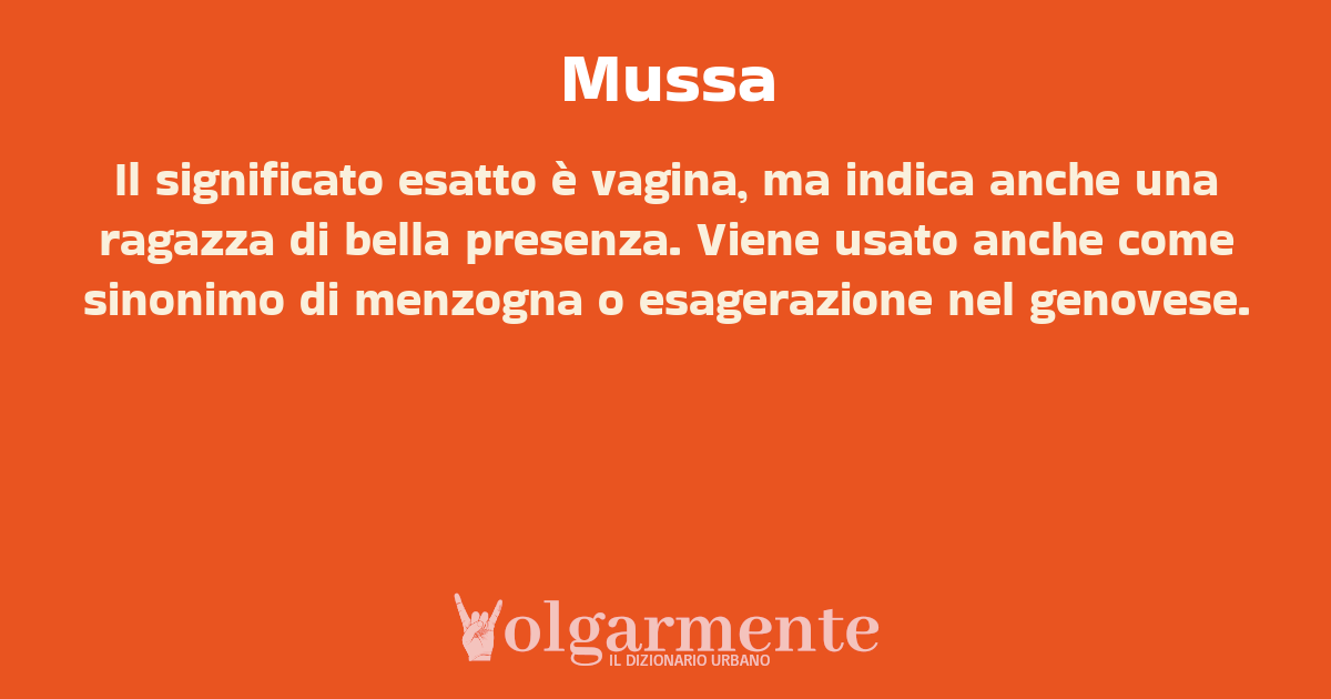 su0 down0 +0 Il significato esatto è vagina, ma indica anche una ragazza di bella presenza. Viene usato anche come sinonimo di menzogna o esagerazione nel genovese. da Anonimo Genova, GE, Liguria