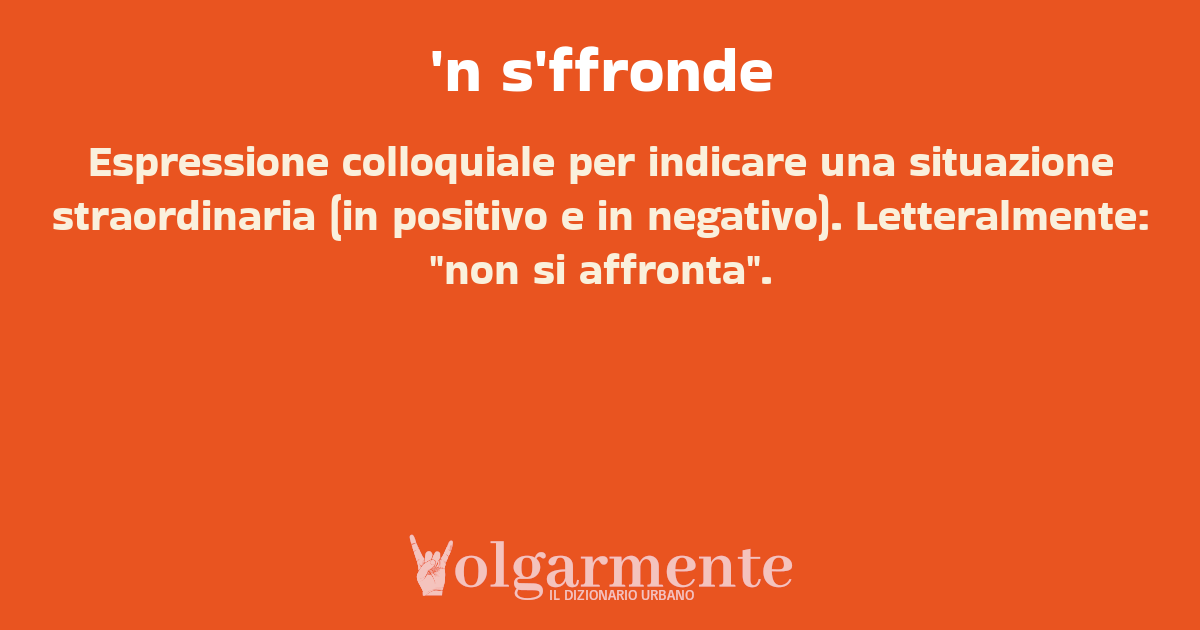 Espressione colloquiale per indicare una situazione straordinaria (in positivo e in negativo). Letteralmente: "non si affronta".
