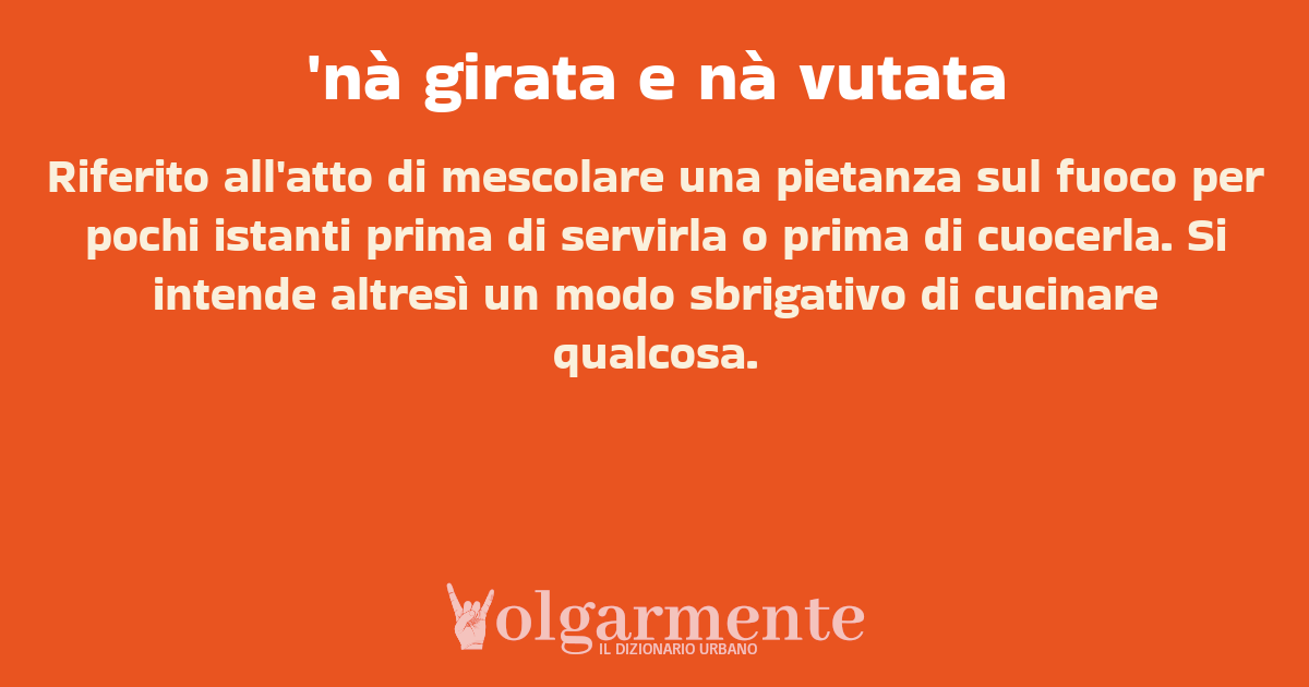su0 down0 +0 Riferito all'atto di mescolare una pietanza sul fuoco per pochi istanti prima di servirla o prima di cuocerla. Si intende altresì un modo sbrigativo di cucinare qualcosa. da Giovanni San Giorgio Ionico, TA, Puglia